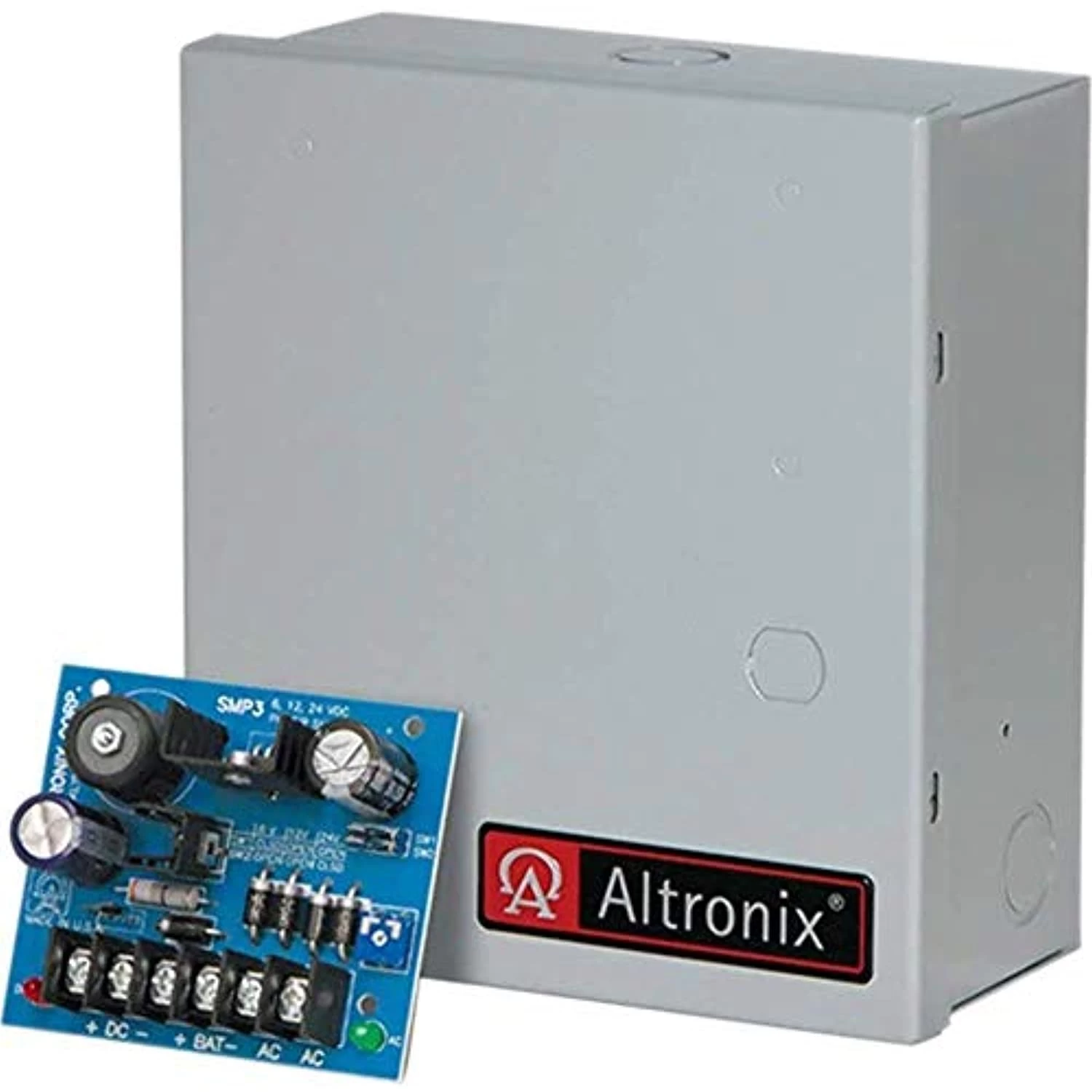 Altronix SMP3ET power supply/charger converts a low voltage AC input into a 6VDC, 12VDC or 24VDC output. This unit has a wide range of applications for access control, security and CCTV system accessories that require additional power.