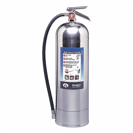 Badger’s water extinguisher is ideal for Class A fires involving common combustibles such as trash, fabrics, wood and paper. Water is economical and easy to clean up. The Badger model WP-61 water fire extinguisher has additionally been UL tested and listed as a “Loaded Stream” fire extinguisher. When properly charged using the Badger AC-40 potassium acetate loaded stream charge (P/N 00792) this extinguisher is approved for low temperature applications down to -40°F (-40° C).