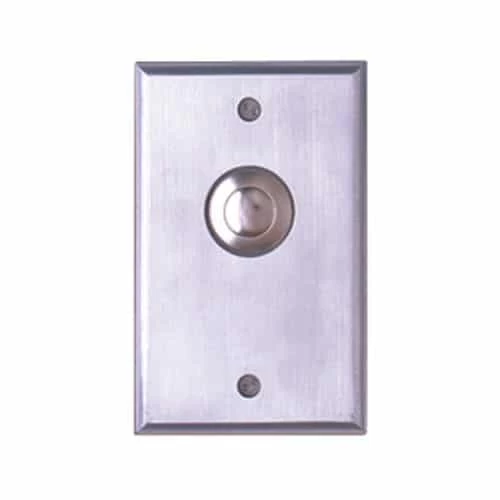 Camden Door Controls CM-9000 Series exit switches are vandal resistant pushbuttons, especially designed and manufactured for high traffic or vandal prone applications. The buttons are an all-metal construction, and will withstand extreme attacks of all types. The buttons are countersunk in a heavy duty, 1/4″ thick brushed aluminum faceplate, in single gang (2 3/4″) or narrow stile (1 3/4″) widths. Optional US40 (duranodic), finish is also available. DPDT switches are UL/CSA approved, rated 6 amps @ 30 VDC in either momentary or maintained configurations.