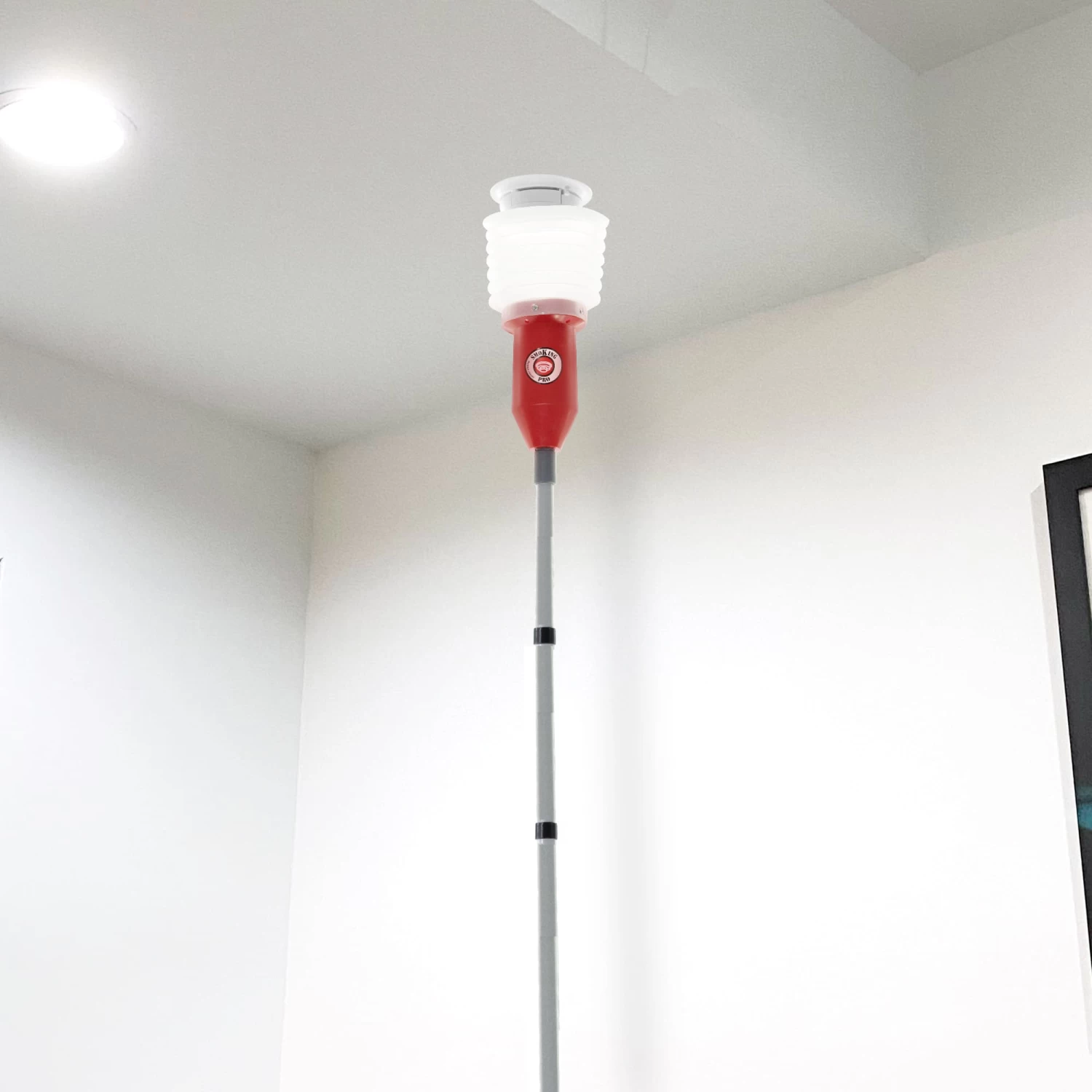 -  The ONLY tester on the market able to clear smoke residue from detectors using the transparent flexible rubber bellow test cup as a plunger – for those annoying detectors that get stuck in alarm and won’t reset. Bellow head allows for hands free testing by acting as a shock absorber, pinning the pole between ceiling and floor